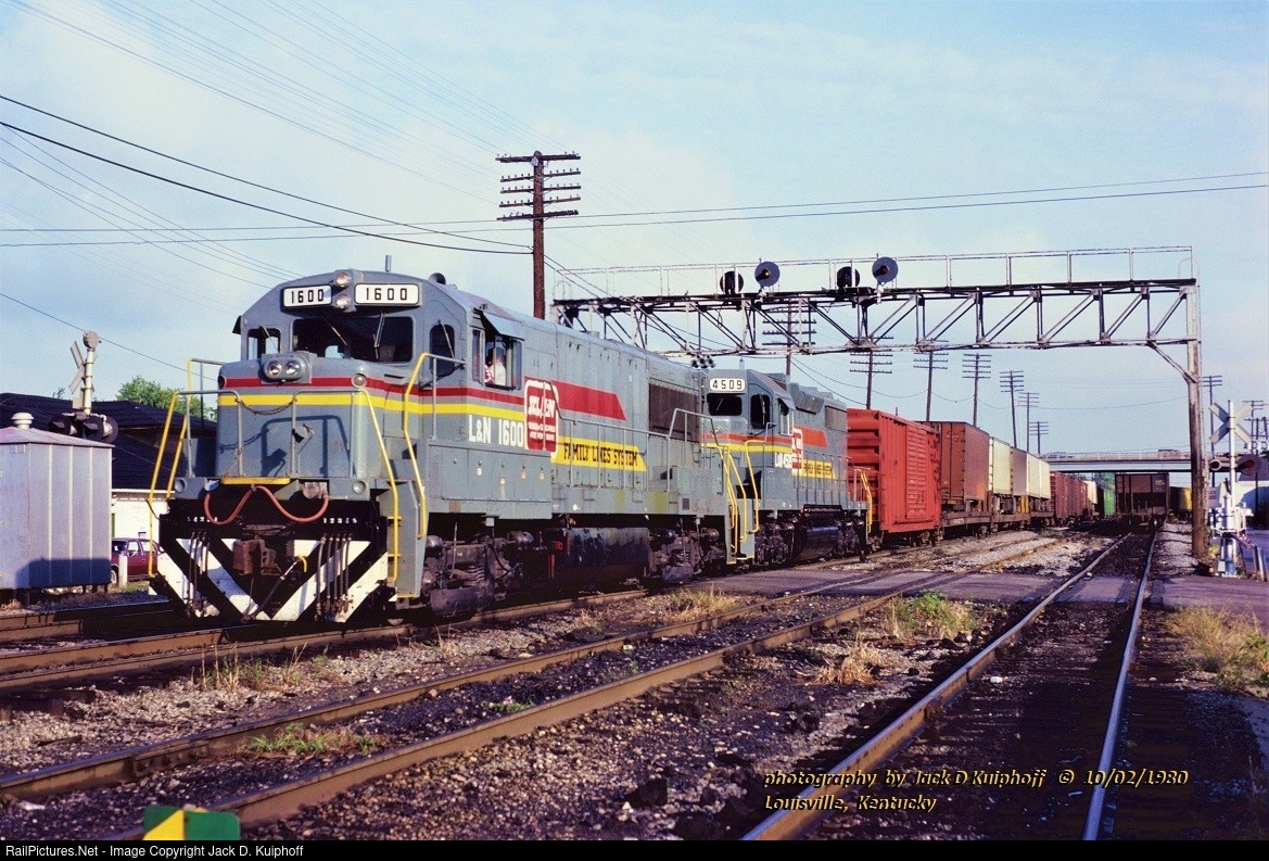 | Family Lines System, L&N U25B 1600 -SD35 4509, at Louisville, Kentucky. October 2, 1980. Jack D Kuiphoff © photo |