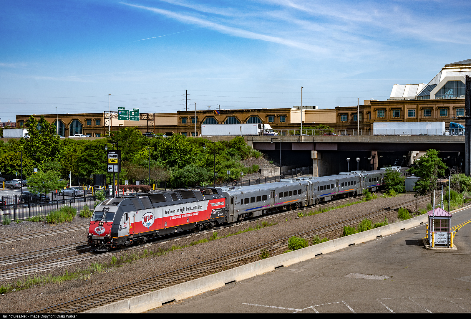 The Atlas Model Railroad Company began operating in 1924, and thus this year, 2024, is their 100th Anniversary. Halfway through this year, I was fortunate enough to catch NJ Transit ALP-45DP 4503 pulling train 1215 out of Secaucus Junction station on its way from Hoboken to Waldwick, with this special locomotive on the point. The Bombardier ALP-45DP locomotives are dual power, able to operate with a diesel engine or from overhead wires (thus, the pantograph in this locomotive, even though there is no catenary on this line). Congratulations to Atlas and their employees, some of whom I have known through the years, for achieving this Centennial milestone! (Secaucus, New Jersey – July 2, 2024)