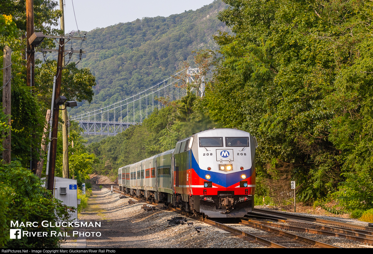 Flyin' By Forty-Six. MTA Metro-North Railroad Train 809 was led by the then most popular locomotive on the railroad on the morning of Thursday, August 3, 2023. Metro-North (MNCW) GE P32AC-DM 208 had recently had this special 40th Anniversary wrap added commemorating the "beachball" paint scheme that was once dominant on FL9s on this line and still lives on the West of Hudson fleet. The wrap would be the first of four "heritage" wraps added for the 40th Anniversary. The train has just passed the Bear Mountain Bridge along the shores of the Hudson River as it heads through Manitou, New York toward Poughkeepsie, New York. The locomotive has been out of service recently for mechanical work at Croton Harmon, and will return to the rod when completed.