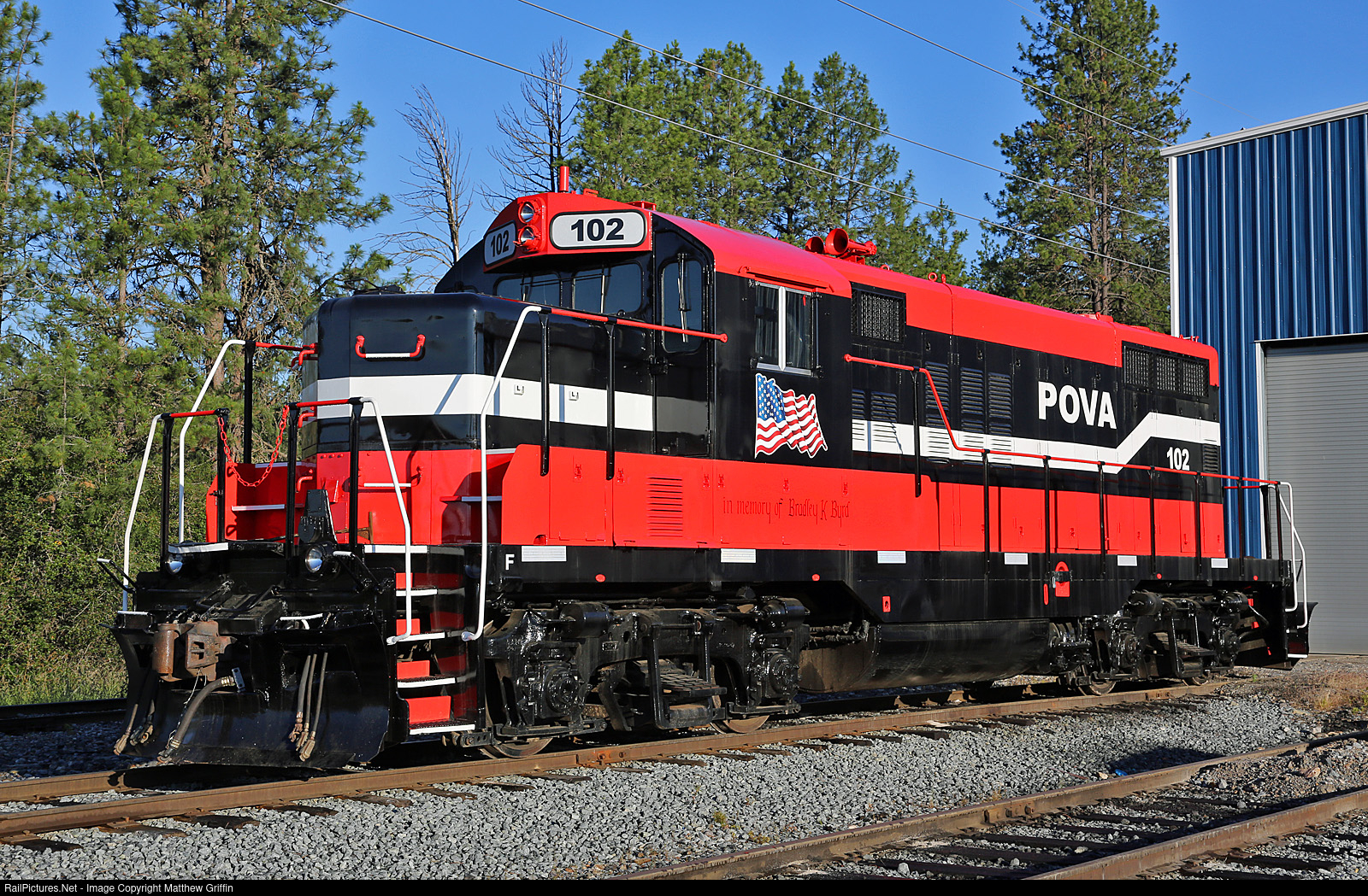 RailPictures.Net Photo: POVA 102 Pend Oreille Valley Railroad EMD GP9 at Usk, Washington by Matthew Griffin