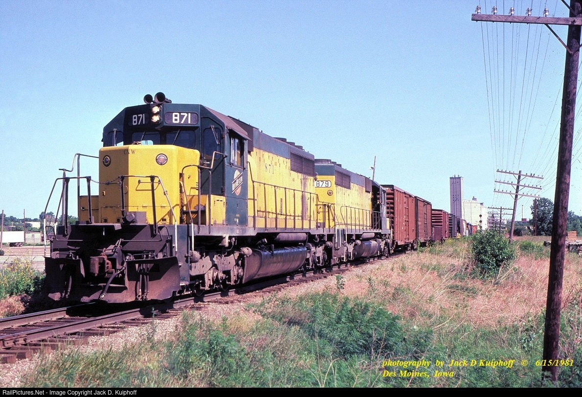 | Chicago and North Western, C&NW SD40's 871- 879, at Des Moines, Iowa. June 15, 1981. Jack D Kuiphoff photo © |