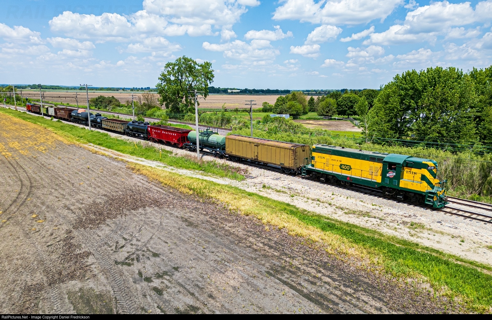 | This was C&NW Weekend at the Illinois Railway Museum, where all the C&NW locomotives on museum property were given a chance to run trains on the mainline. The museum also hosted the C&NW Historical Society as part of its annual convention, and Union Pacific even sent UP 1995 for display! Here, CNW GP7 #1518 leads a lengthy photo freight through Johnson Siding. |