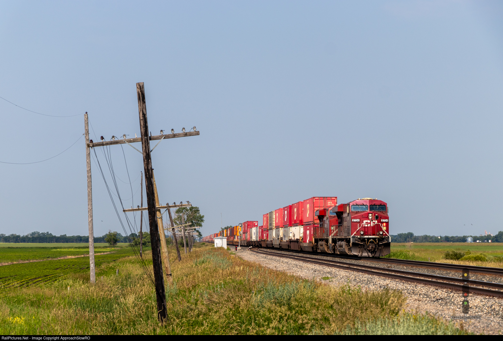 | An eastbound Intermodal/Manifest approaches Munro Road, as CP 2816 is behind the camera waiting on the train, and its maintenance stop. |