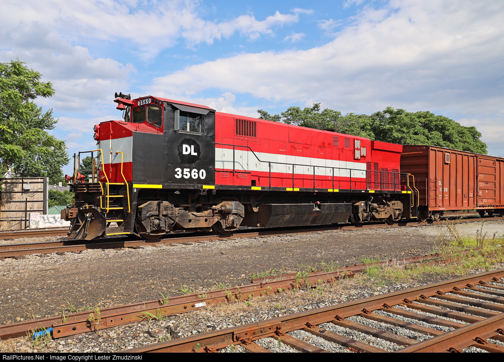 | Delaware Lackawanna's newest acquisition has already been busy working. Here seen idle at the end of a day. This M420W survived the ALCO purge of the LAL and was Ontario Midland 3560 (OMIX); originally CN 2560. D-L is keeping it 3560 (for now), but has replaced the as delivered OMIX from the cab and stenciled it DL. |