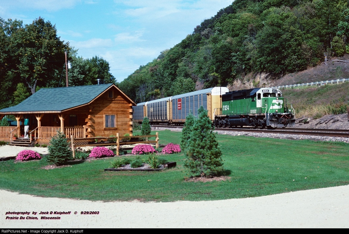 BNSF SD40-2 8054, is southbound along the Mississippi River at Prairie Du Chien, Wisconsin. September 29, 2003. Jack D Kuiphoff © photo