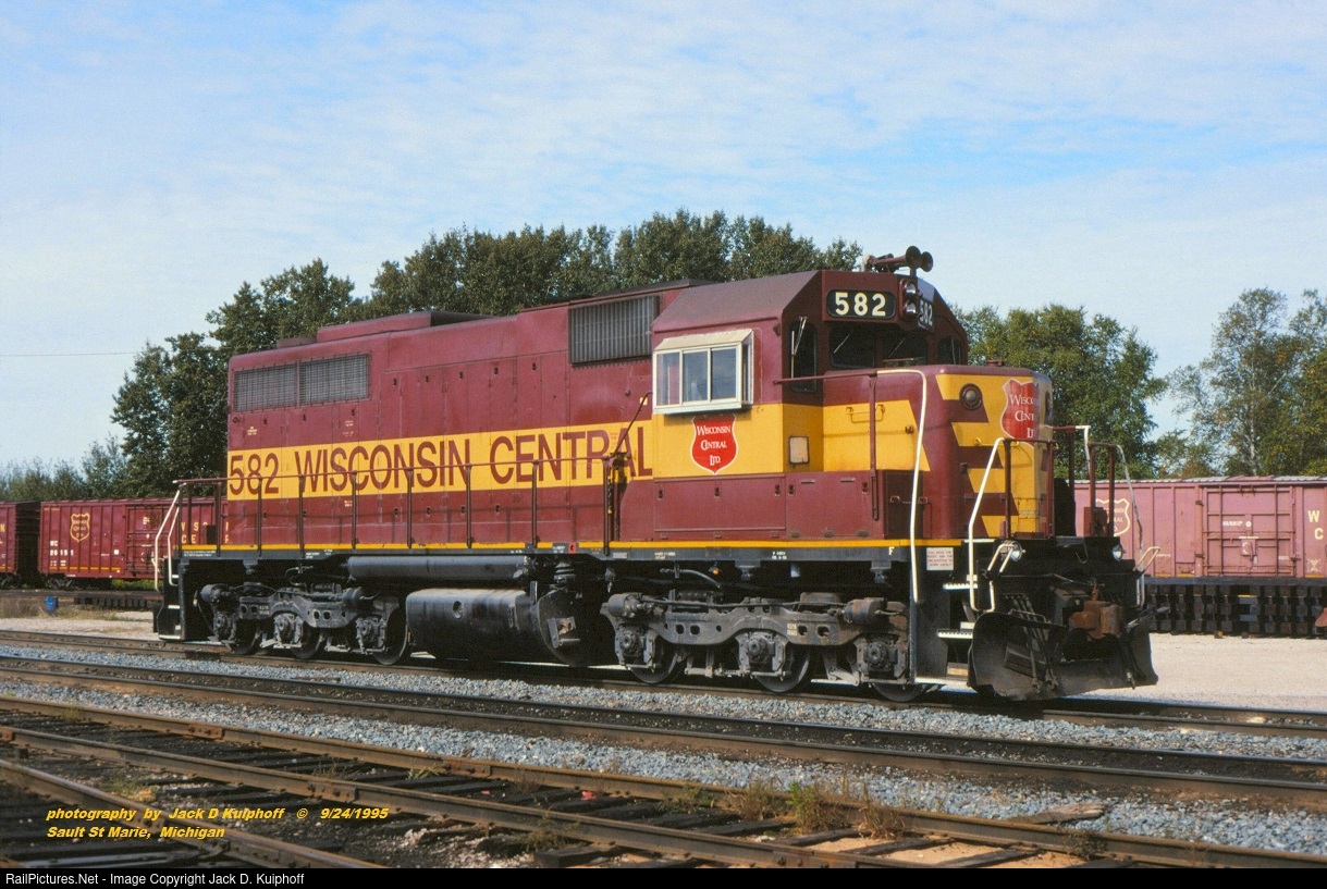 | WC, Wisconsin Central, ex-MILW, SDL39 582, at Sault St Marie, Michigan. September 24, 1995. Jack D Kuiphoff © photo |