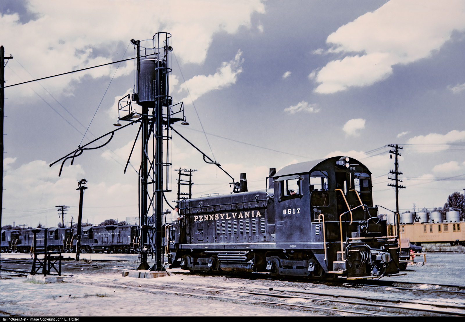 | PRR 8517 takes on sand n the PRR Yard B facility located in Logansport, IN. Kodachrome, photographer unknown, John E. Troxler collection. |