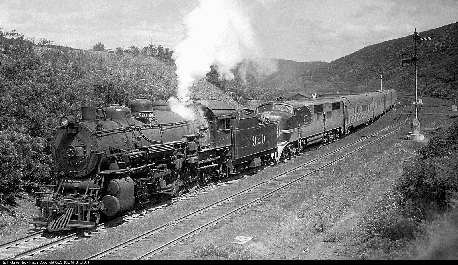 AT&SF train 21, El Capitan, is assisted on Raton Pass at Wootton Colorado in 1938. EMC 1 number 6 and five cars trail behind the 2-10-2. Otto Conrad Perry photo, from my collection.