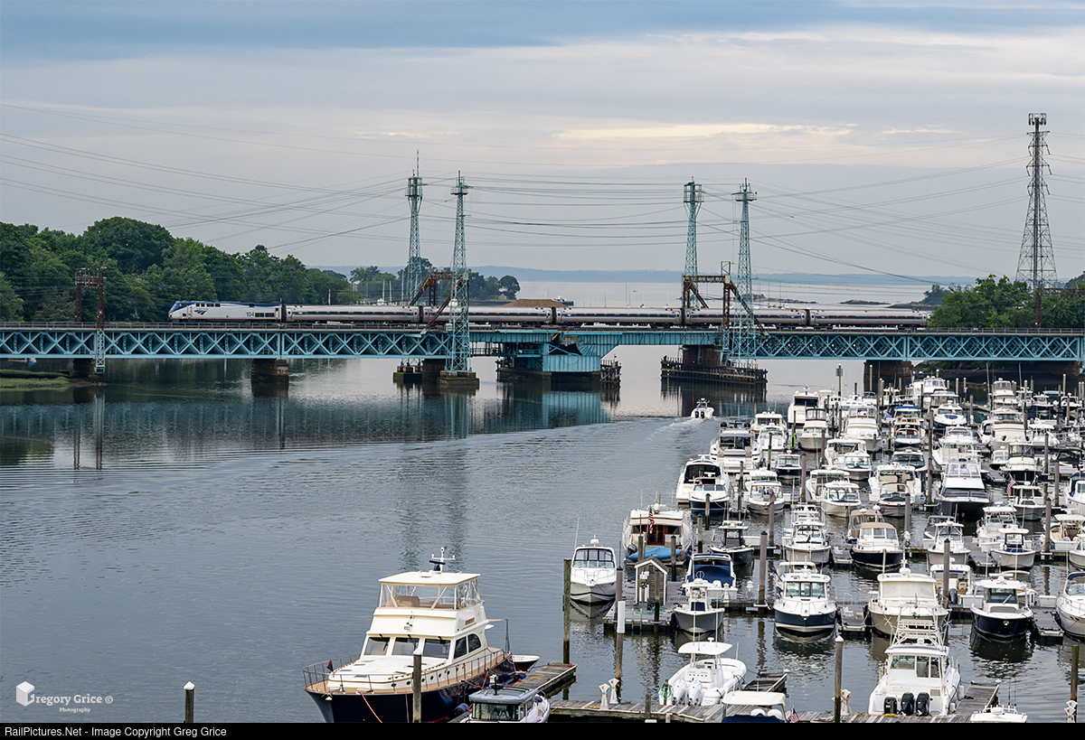On the morning of June 3rd, 2024, Amtrak's eastbound "Night Owl" (66), led by solo P42DC #104, treks across the uniquely-wireless Mianus River Railroad Bridge (CP 230) on Metro-North Railroad's New Haven Line in Cos Cob, Connecticut.