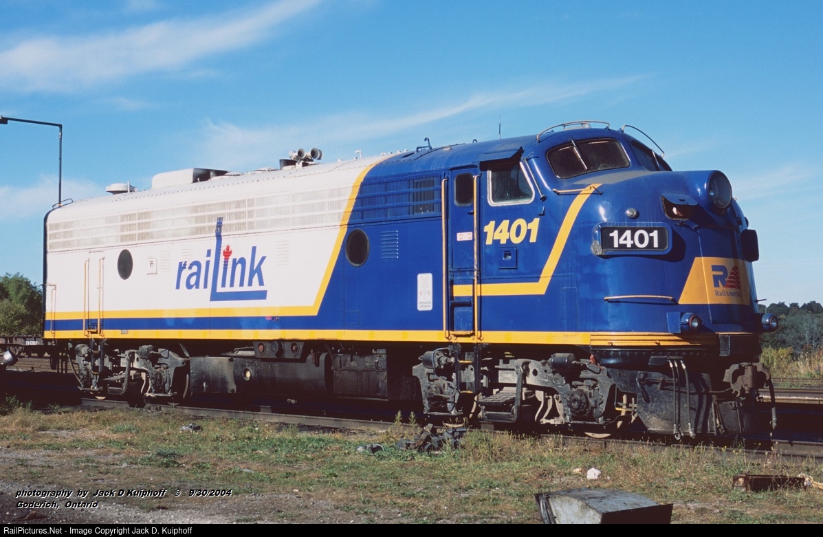 RLK, Railink 1401, GMD FP9u, at Goderich, Ontario. September 14, 2004. Jack D Kuiphoff © photo