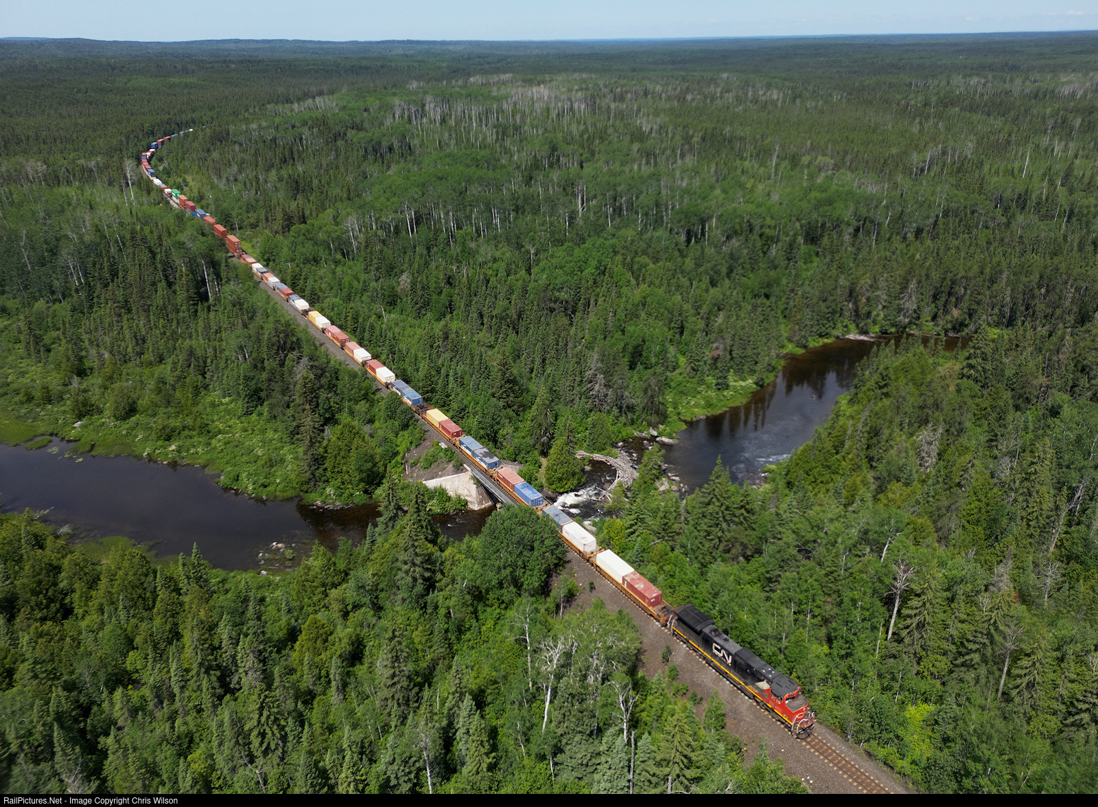 Vancouver Thornton, BC to Brampton Intermodal, ON stacks head east across the Caramat Sub