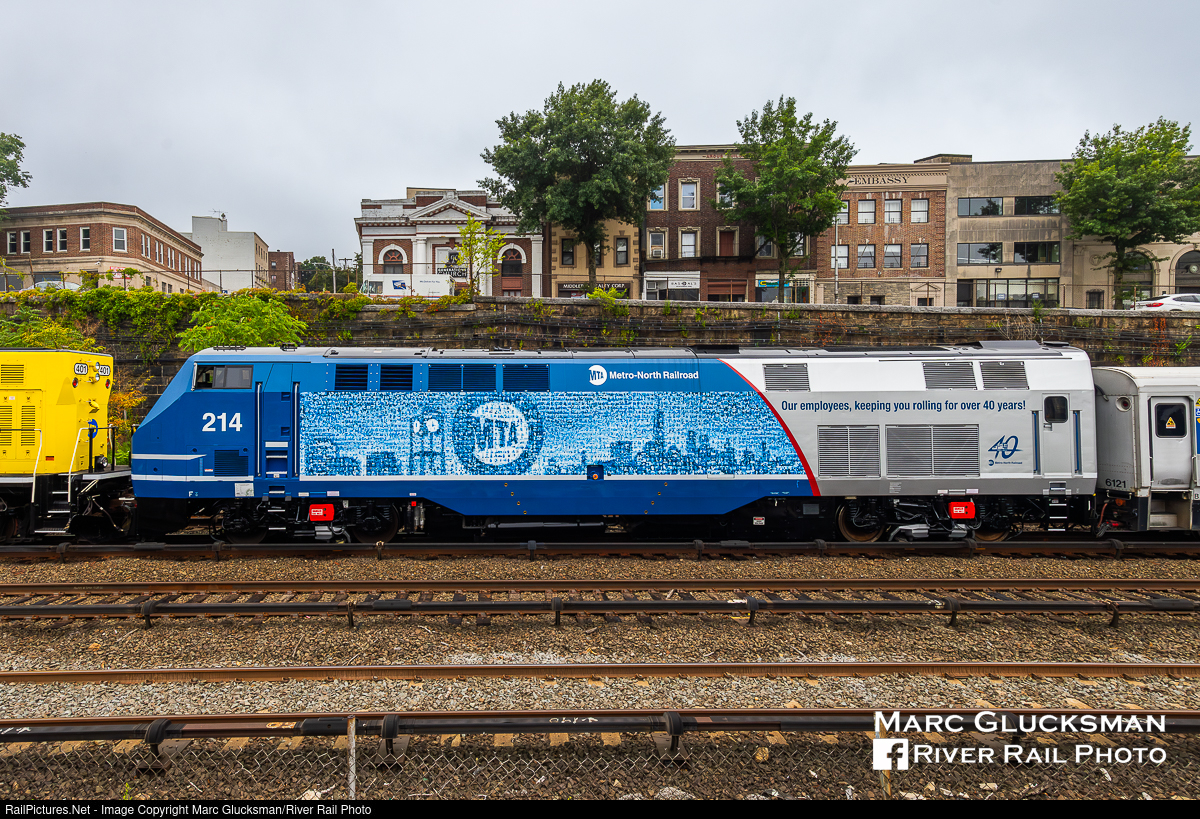 Our Employees, Keeping You Rolling For Over 40 Years. On Wednesday, July, 24, 2024, MTA Metro-North Railroad P32AC-DM 214 needed a hand as it moved to Stamford, Connecticut for the next stop on its facility tour. With Brookville BL14CG MNCW 401 leading, it approached the Mount Vernon East Station in Mount Vernon, New York on the New Haven Line. The locomotive was recently on display at North White Plains Shop for an employee only event to allow MNR staff to see the more than 3,000 photos that make up the mosaics on each side, but has not yet operated in revenue service or been on display for the public. This locomotive is the fifth and final of the 40th Anniversary special wraps planned by the railroad.