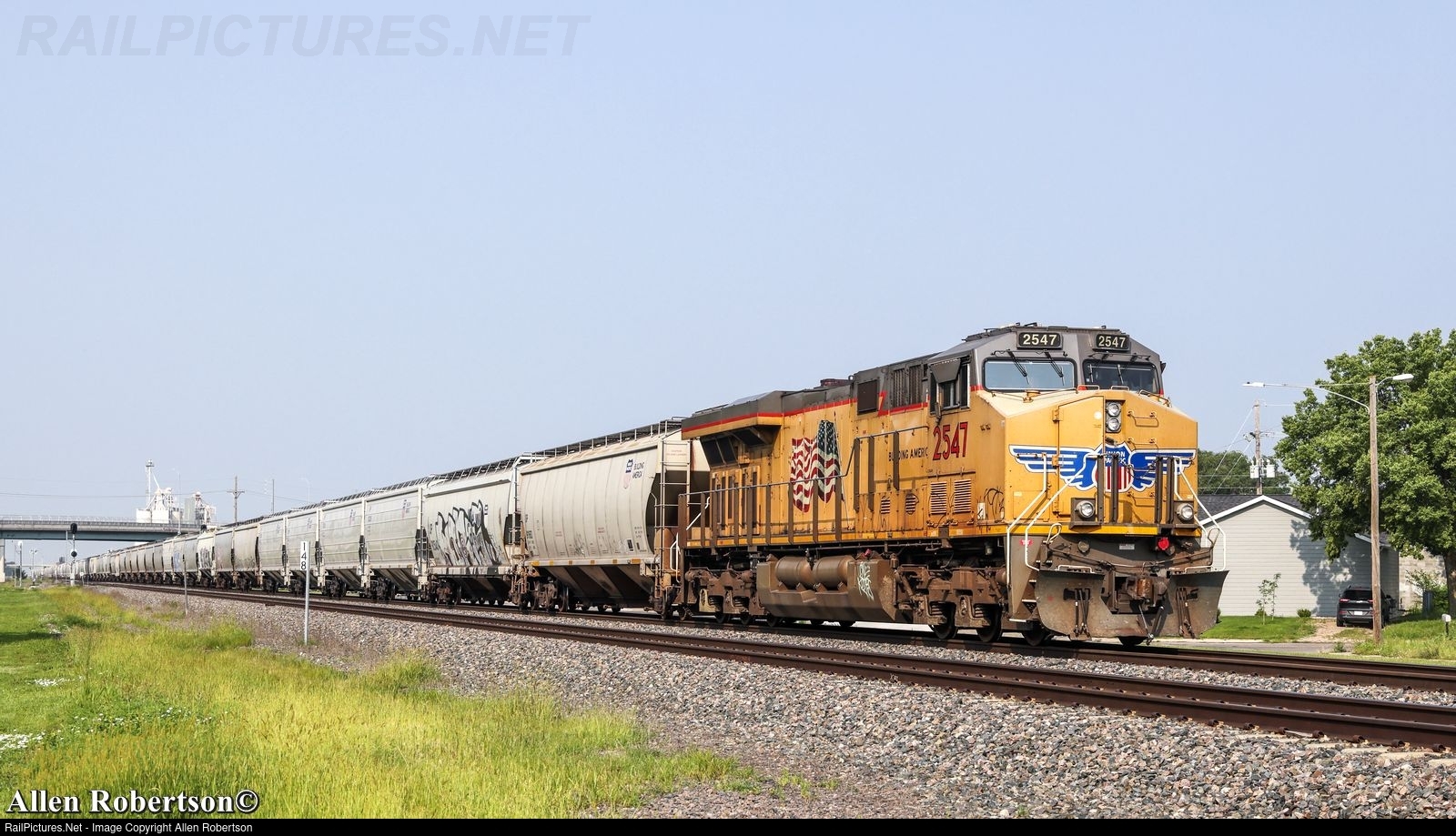 UP 2547 brings up the rear of a westbound grain train.