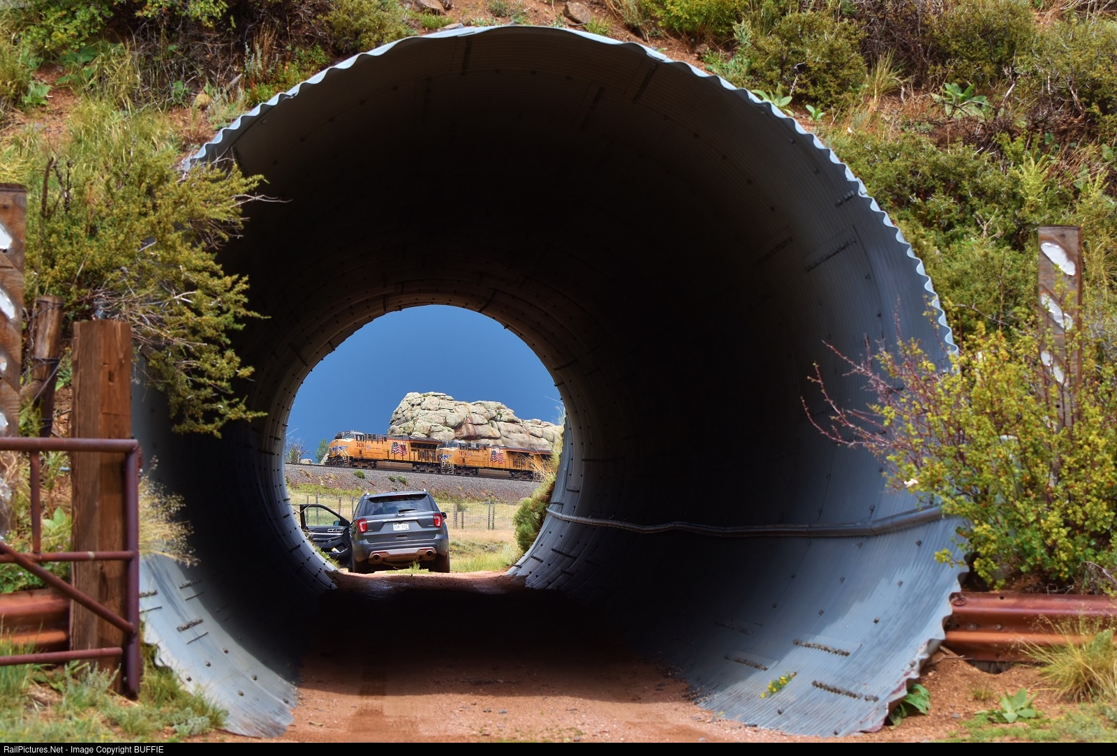 UP 2626 (ET44AC) is spotted through a tunnel as it heads west on Track 2 through Dale Junction, Wyoming.