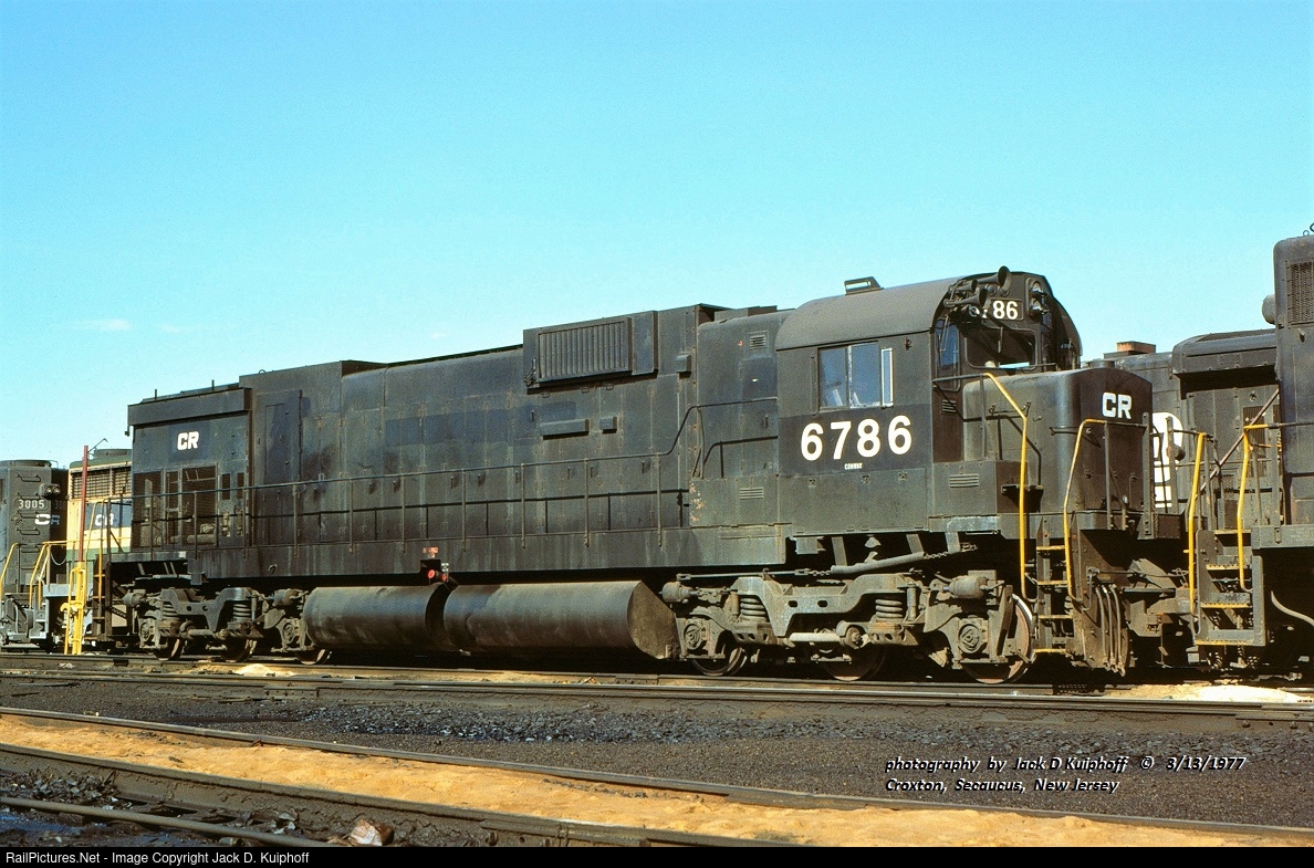| CR, Conrail 6786 Alco C636 at Croxton Terminal, Secaucus, New Jersey. March 13, 1977. Jack D Kuiphoff © photo |