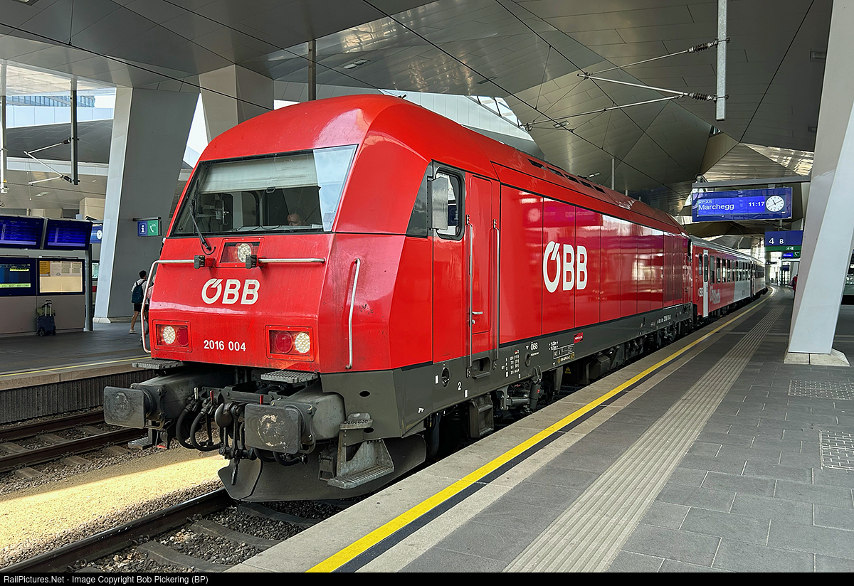 | A Hercules as it's known, OBB Class 2016 Siemens Eurorunner waits on a Regional Express service at Wien HBF. Diesels are few and far between on this largely electrified railway network. |