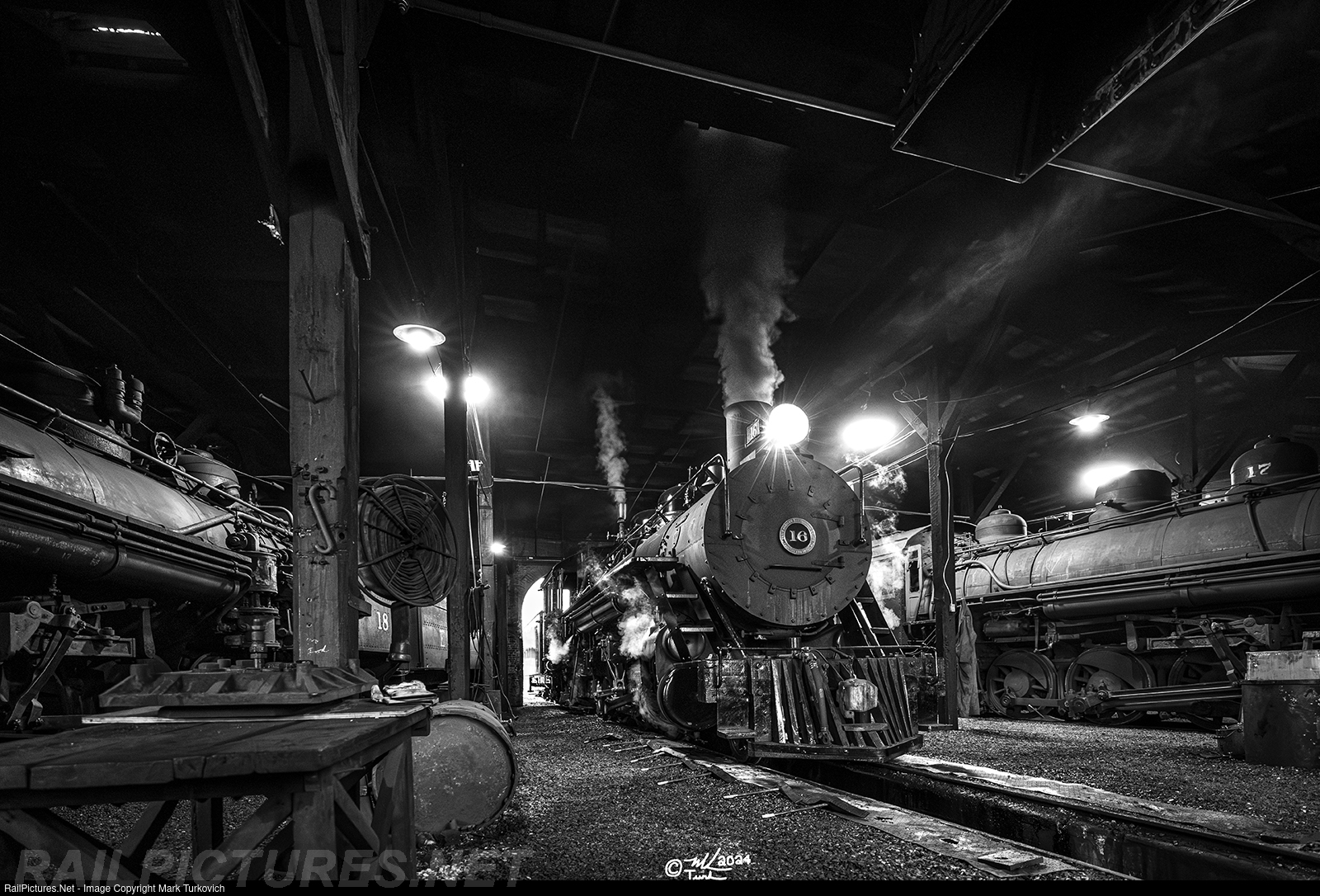 East Broad Top 16 enters the roundhouse late in the day near the end of its first season of operation.