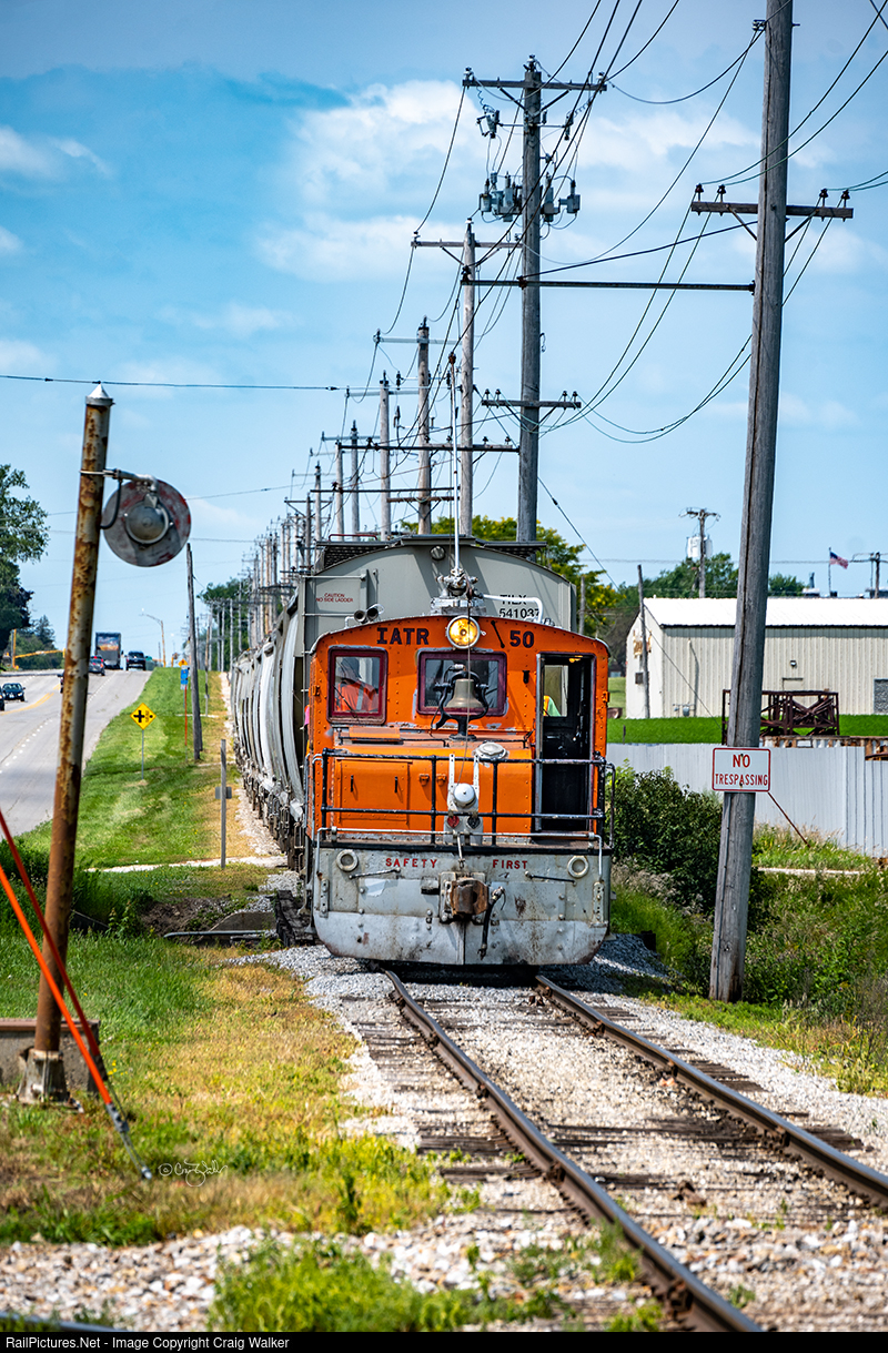 Iowa Traction Railway 50-Ton Steeplecab 50, built in October 1920 by Baldwin-Westinghouse, has just picked up a cut of grain hoppers for the AGP elevator across 19th Street SW. IATR 50 was built by Baldwin-Westinghouse in October 1920 as Washington & Old Dominion 50. In 1948 it became Cedar Rapids & Iowa City (as CRIC 58), and in 1956 was sold to Kansas City’s Kaw Valley & Western (KVW 507). In 1963 it was sold again, this time to Iowa Terminal (ITR 50) and then Iowa Traction 50 in 1987. The diminutive locomotive is dwarfed by today's large covered hoppers.