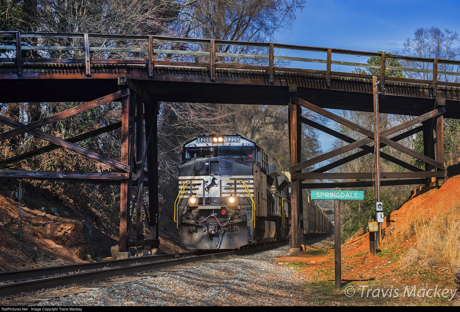 NS 18D going under a wood bridge at Springdale