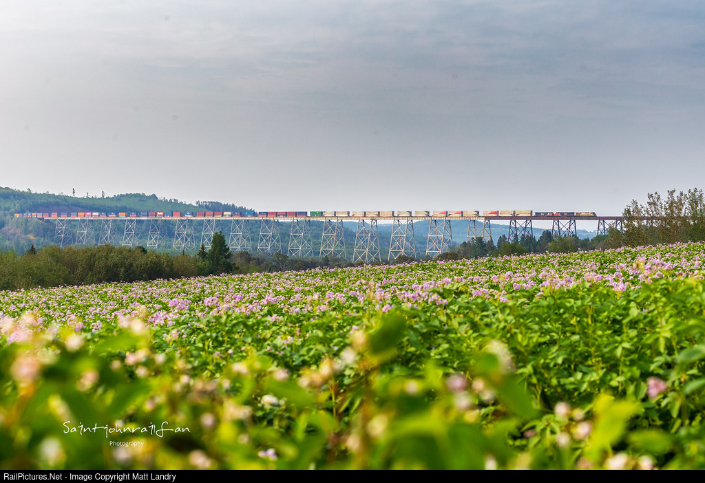 CN 121 crossing the 3,920 foot Salmon River Trestle in Northern New Brunswick.