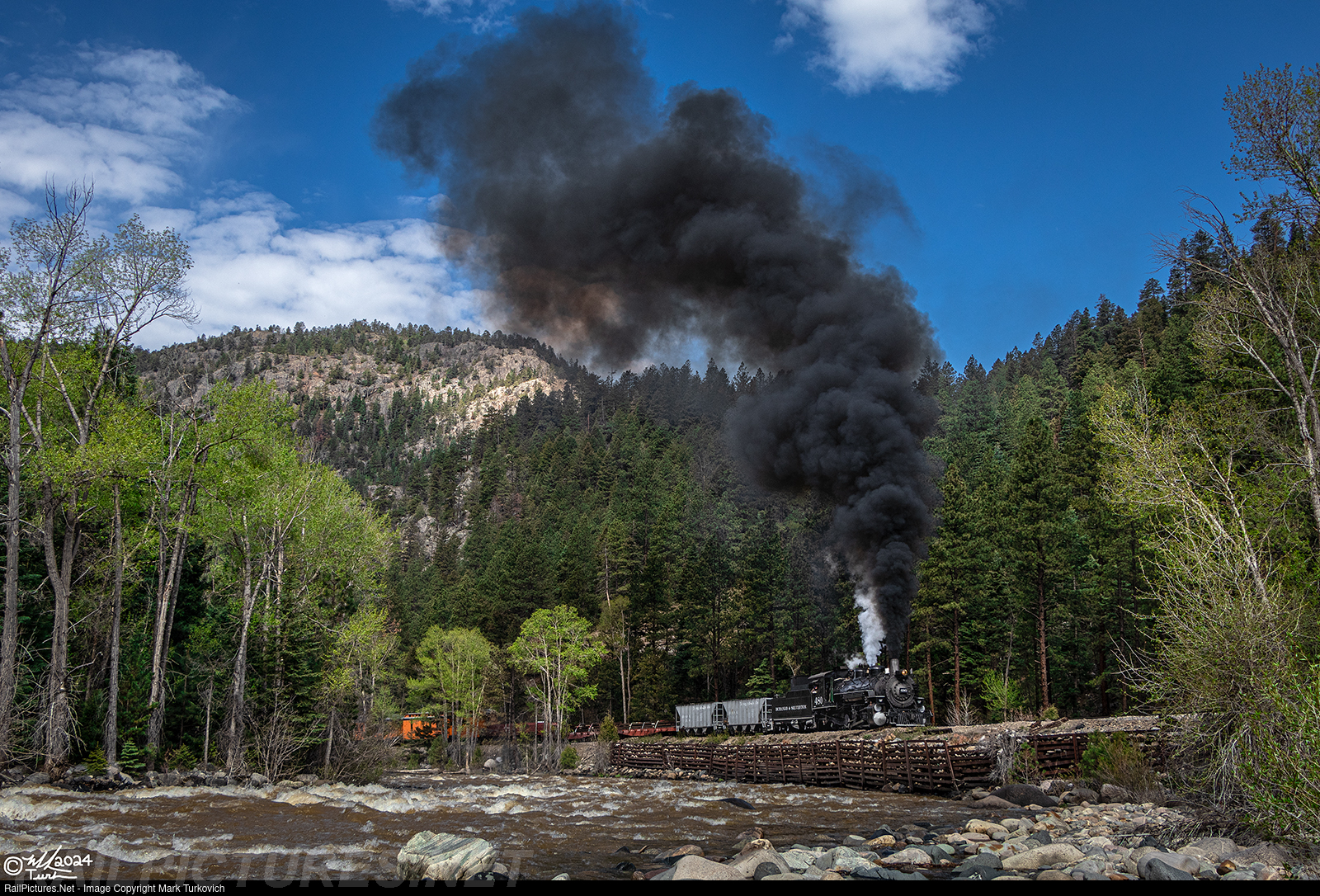 RailPictures.Net Photo: DSNG 480 Durango & Silverton Narrow Gauge Railroad Steam 2-8-2 at Cascade Canyon, Colorado by Mark Turkovich
