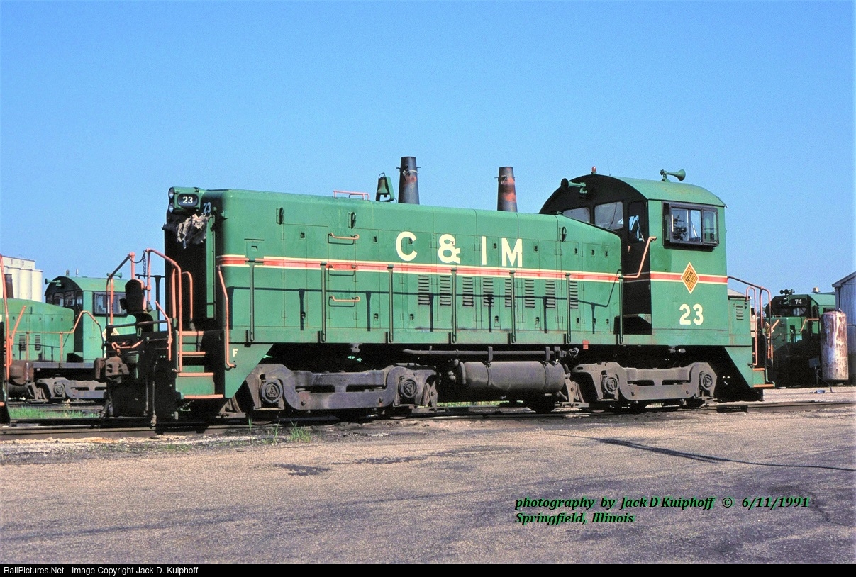 | Chicago and Illinois Midland, C&IM SW1200 23, at Springfield, Illinois. June 11, 1991. Jack D Kuiphoff © photo