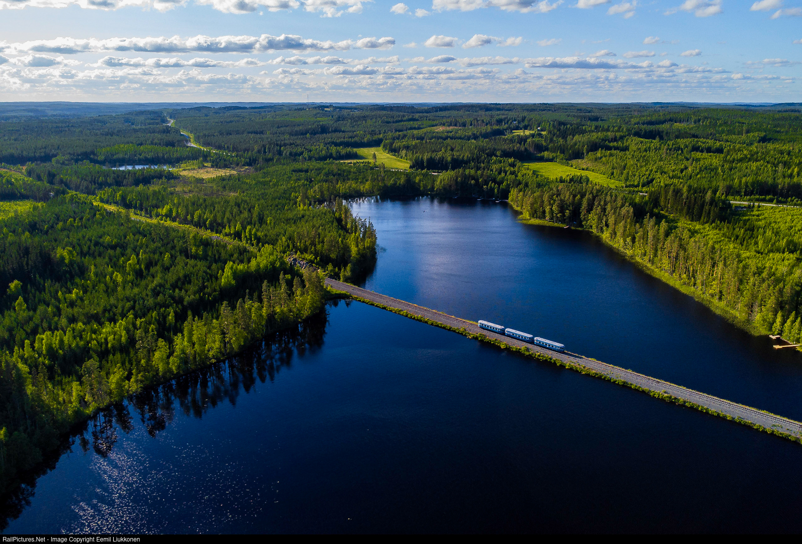 | If you know thing or two about Finland, you might have heard the saying "The land of thousand lakes". This is one of them, the beutyfull lake Tyrisevä, which the small Dm7s are crossing while travelling from Haapamäki to Keuruu. |