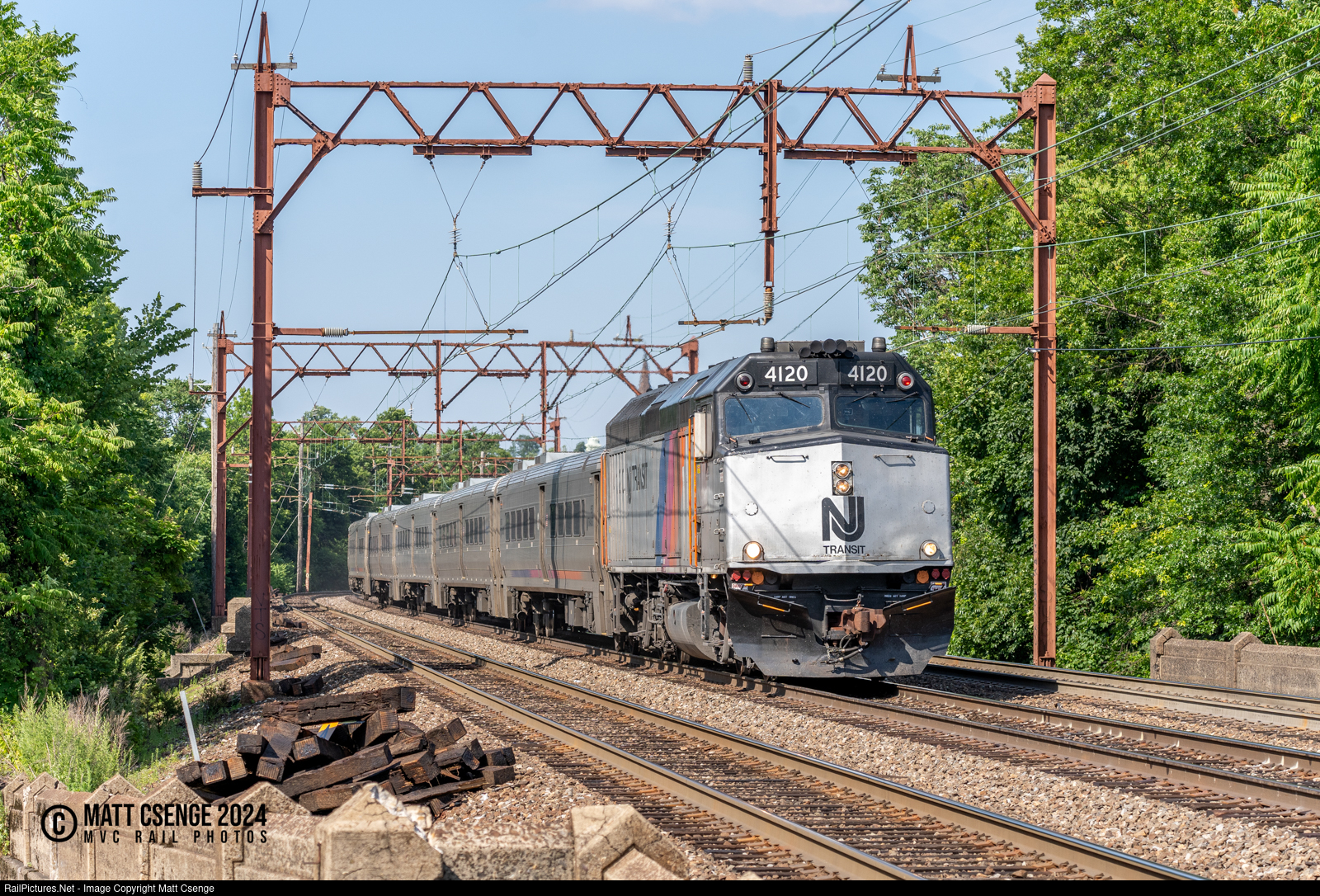 NJ Transit F40PH-2CAT no. 4120 is seen leading Morristown Line train 853 towards Highland Avenue Station.