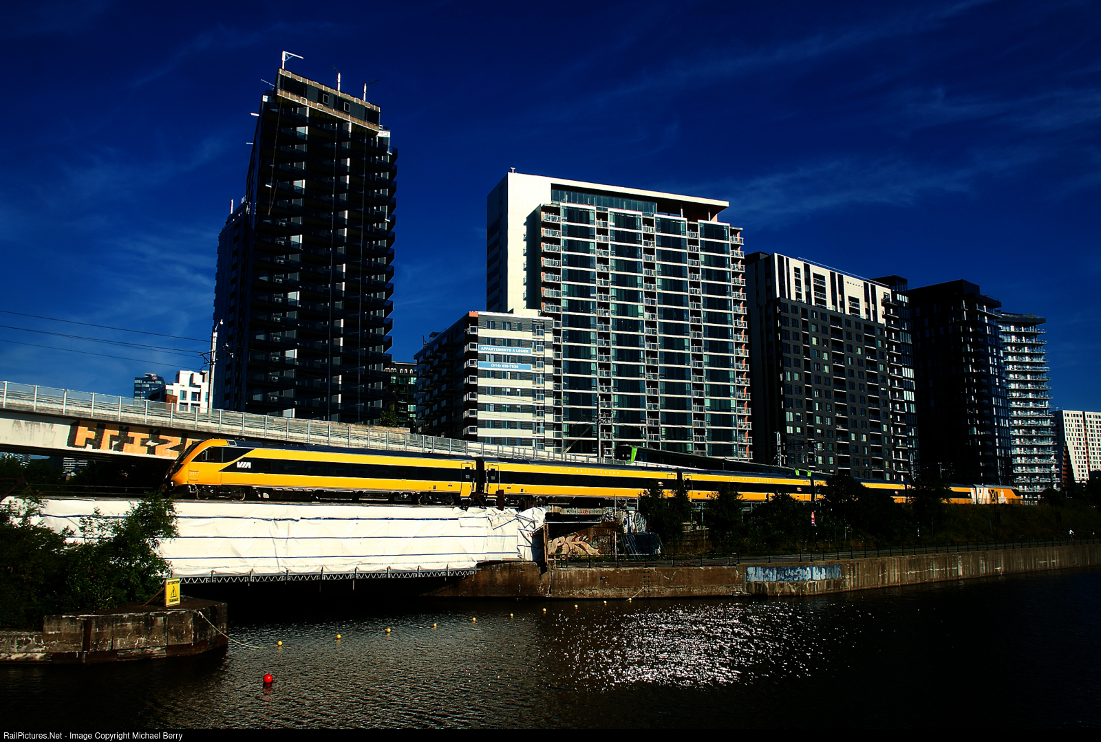 VIA 22 with the specially painted 'Lumi' trainset is passing the Peel Basin. It entered revenue service last week.