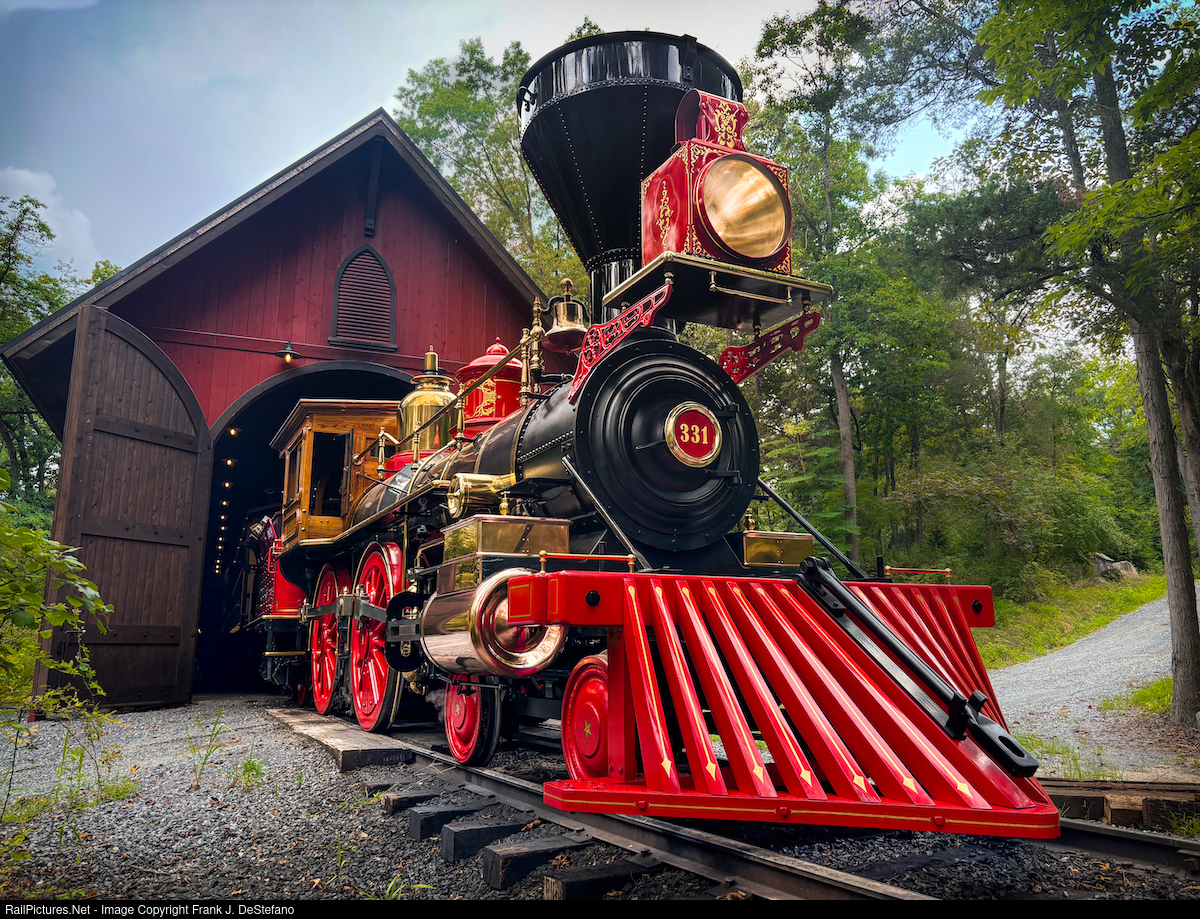 Harrisburg, Lincoln, & Lancaster 331, formerly Leviathan 63, simmers outside the engine house with a trainload of charter trip passengers. The operators do an impeccable job recreating 1860's railroading. At certain spots along the line there are few if any reminders of the modern world.