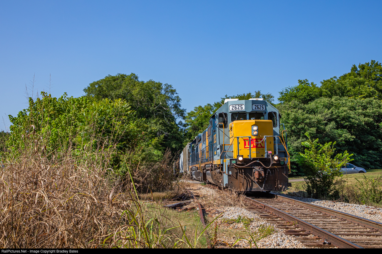 | CSXT GP38-2 #2625, sporting the L&N paint scheme on the nose is seen shoving a cut of cars to the EARY interchange at Bemiston just south of downtown Talladega, AL. It's pretty remarkable to be photographing an L&N motor on former L&N tracks in 2024. This line was once part of the Birmingham Mineral Loop, the section between Sylacauga & Talladega is now owned by Eastern Alabama Railway. |