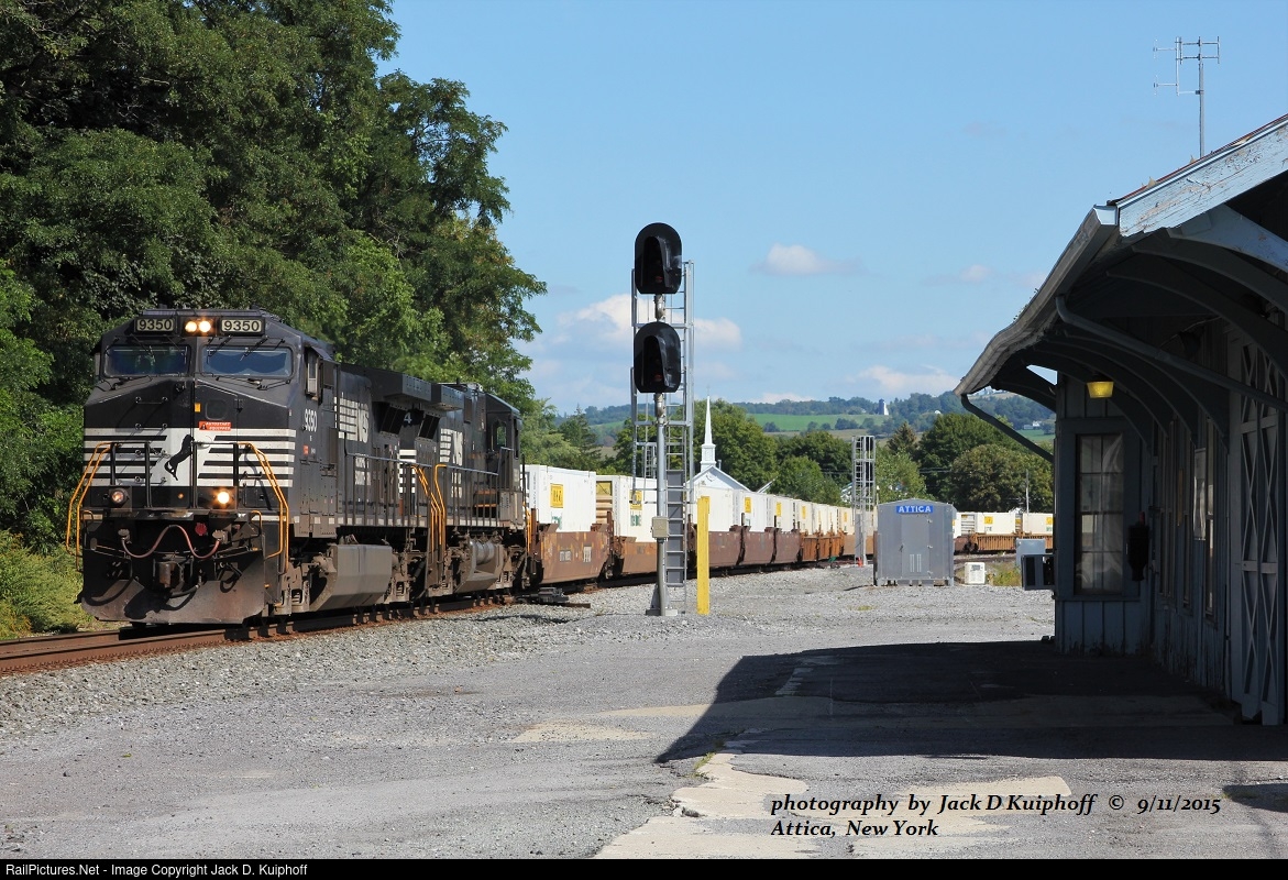 | Norfolk Southern, NS 9350, with westbound 23K on the ex-Erie Southern Tier at, Atica, New York. September 11, 2015. Jack D Kuiphoff © photo |
