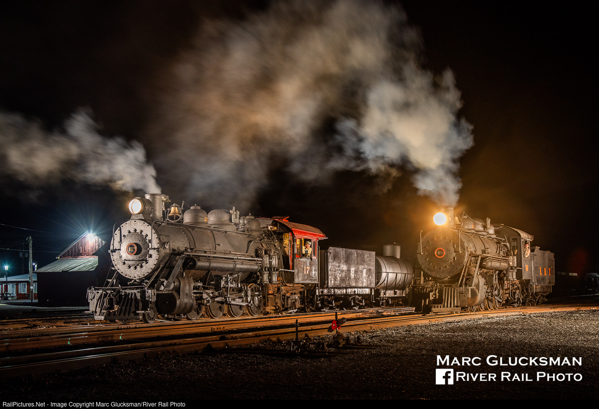 Mikados At Night. On August 14, 2020 during a night shoot at the East Broad Top Railroad in Rockhill, Pennsylvania, EBT 2-8-2s 17 (Baldwin, 1918) and 18 (Baldwin, 1920) were posed, lighted, and 'steamed up' (with fake smoke) as part of the event. Both locomotives are making (what was at the time) a rare appearance out of the roundhouse as EBT 17 pulled the last revenue freight train and last operated in 2001, while 18 was the locomotive purchased by the railroad and 'retired' due to technical problems in 1956, never turning a wheel under steam during Kovalchick ownership. The nickname "Mikado" was applied to a group of 2-8-2 narrow gauge locomotives that were built by Baldwin for Nippon Railway of Japan in 1897, but it was the popularity of the 1885 Gilbert and Sullivan opera, 'The Mikado' that put the word into the American vernacular.