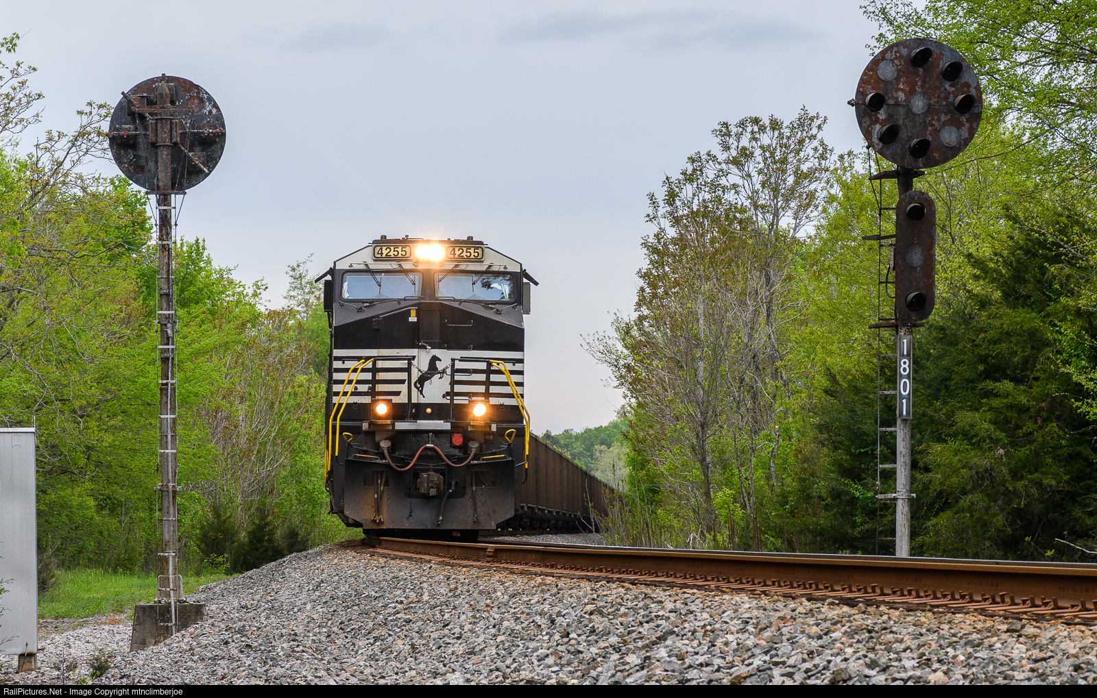 | A pair of GE's lead loaded Norfolk Southern coal train 778 as splits the intermediate signals in Long Island, Virginia at mile 180.1 on the Altavista District. The train is heading towards the junction in Brookneal where it will get on the Durham District to head south.