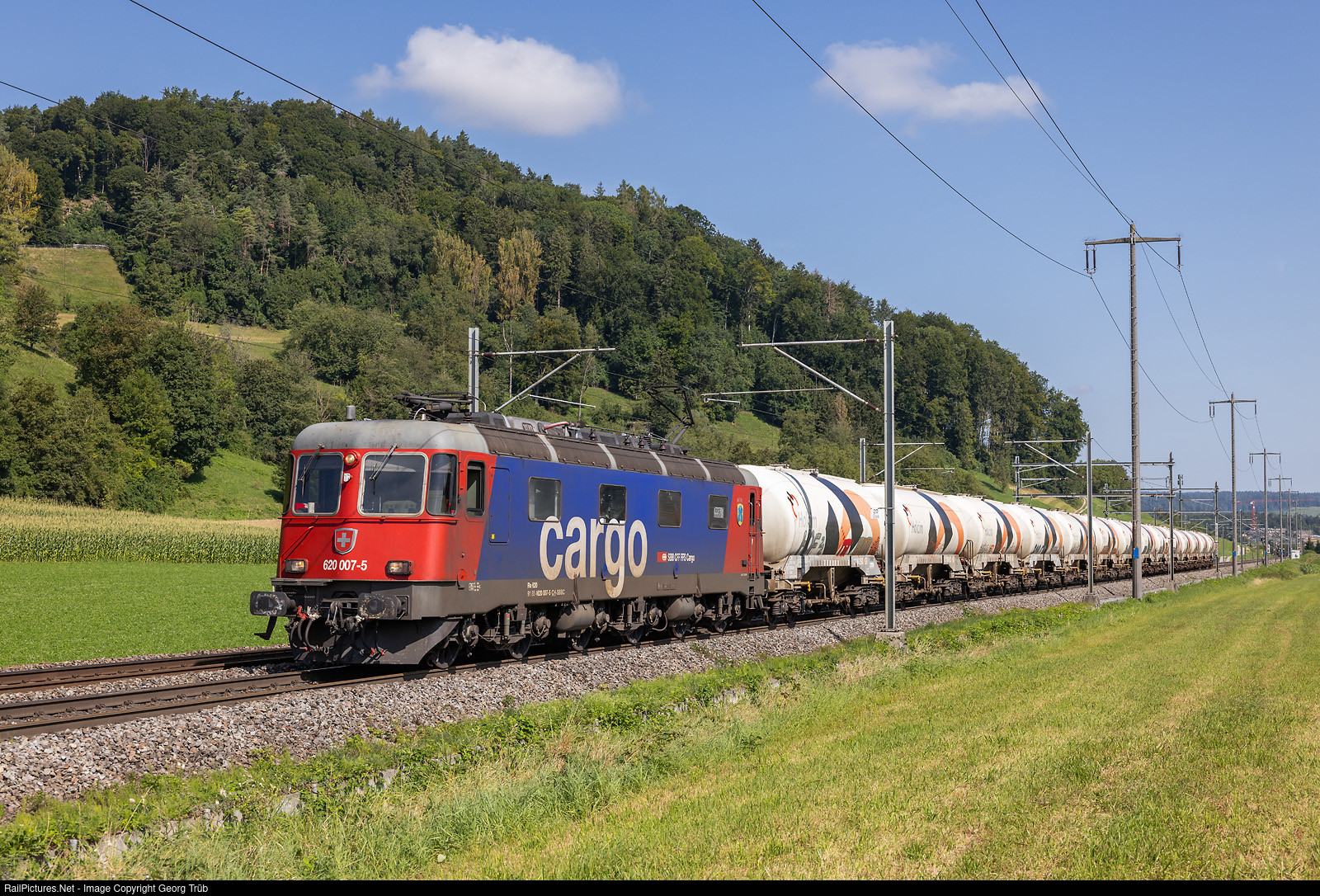 | Re 620 # 007 (Re 6/6 # 11607) of the SBB pulls the loaded HOLCIM oil shale train 47043 from (Dotternhausen-) Singen (Hohentwiel) via Schaffhausen-Bülach-Regensdorf-Brugg-Olten-Biel-Lausanne shunting yard (loop) to Eclepens (ciment work). |