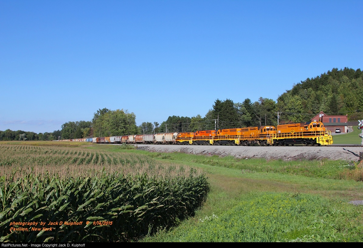 | W&C, Wellsboro and Corning SD40-3 3346, ex-BP 3346>KCS 6639>GTW 5936>CN 5205, leading a southbound on the R&R, Rochester Southern, Pavilion, New York. September 14, 2015. Jack D Kuiphoff © photo |