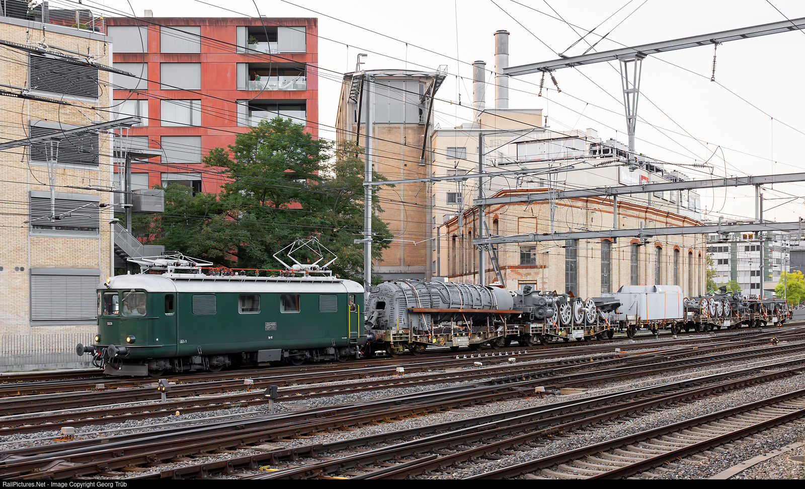 Around 25 years after the steam locomotives 141 R # 1207 and # 1332, built in Canada for the French state railroad SNCF, reached Winterthur to be reconditioned and put back into service, they leave the locomotive building town in individual parts with their final destination Vallorbe. The project had failed early on for financial reasons and the sandblasted and primed parts were stored for years in the Winterthur depot. After the death of the former owner Ralph Schorno, the material was acquired by the English businessman Andrew Cook, probably as spare parts for his operational 141 R # 568, which is stationed in Vallorbe. Train 69180 from Winterthur via Bülach-Koblenz-Turgi-Olten-Neuchatel-Cossonay-Penthalaz to Vallorbe leaves Winterthur with the privately owned former SBB Re 4/4 I # 10039 built in 1950. The train operated under the TR TransRail.