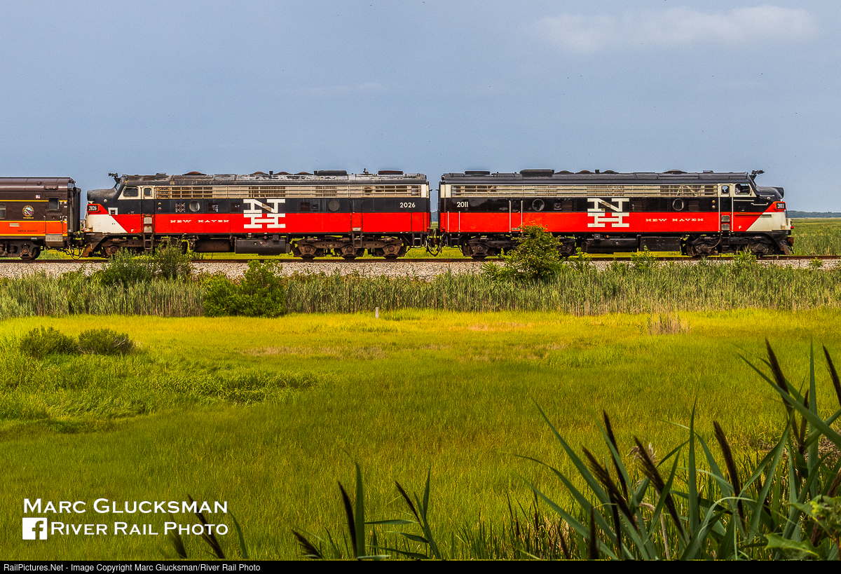 Back-To-Back FL-9s On The Railfan Special. On Saturday, August 17, 2024, as part of 'Railfan Day' on the MassCostal/Cape Cod Central Railroad, former New Haven Railroad FL-9s MC 2011 (née-NH 2038) and 2026 (née-NH 2007) were coupled together on the east/south end of the coach train for three round trips during the event. Running a pair back-to-back was common from the New Haven era all of the way up to their Metro-North retirement from Grand Central Terminal train service. The fact that both are painted the original McGinnis style added to the effect. The train is seen passing through the Great Salt Marsh. Of the sixty original FL-9/FL-9As built by EMD, several sets still survive today in active tourist service, including at the Railroad Museum of New England and Grapevine Railroad.