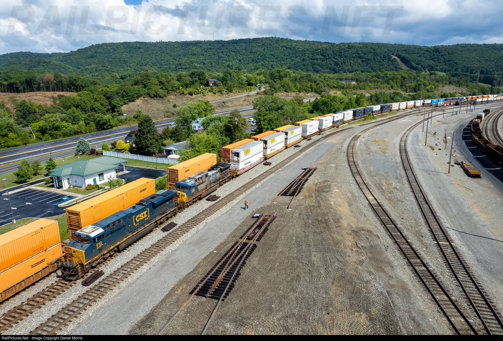 Making the pickup. The Bedford Park, IL bound I115-18 ties down on main 2 to enter the yard to make a pickup. Cumberland has become quite the hub for intermodal traffic in the past year. Panel switches also litter the foreground for the ongoing hump removal project. CSX is projected to spend $35 Million when it’s all said and done.