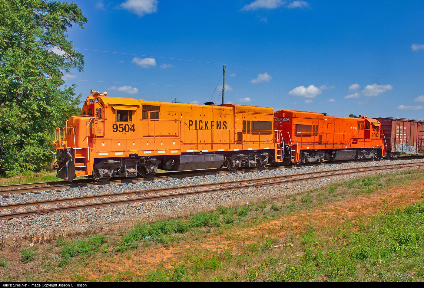 Pickens 9504 is a GE U18B built for the Seaboard Coast Line as SCL 328. It then became CSXT 1926 and placed into regular freight service upon the formation of that railroad. CSX later renumbered her 9504, painted her orange and out her into MoW service and later sold her to the Pickens Railroad.