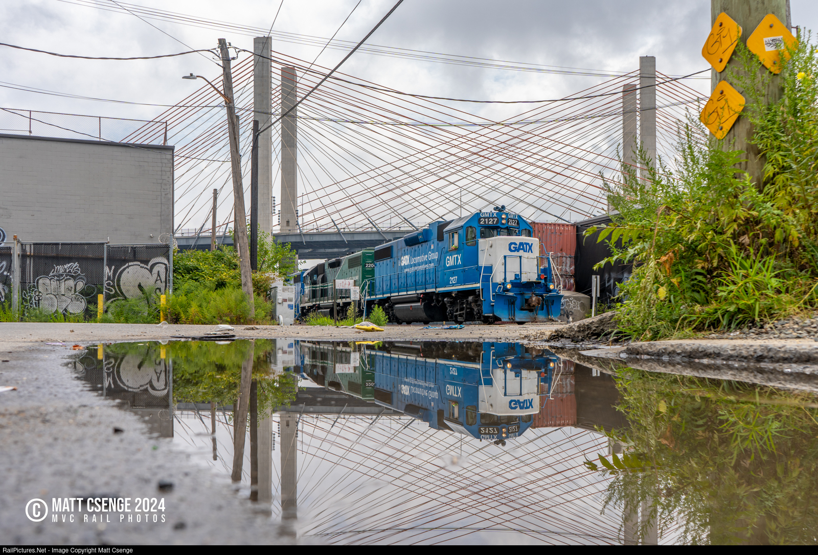 New York & Atlantic train RS40 is seen crawling along the Lower Montauk Branch on their way to Blissville Yard. The train is roughly at the location of the former LIRR Penny Bridge Station, which opened in 1859 and served trains until 1998, when it and all other stations on the branch were closed due to lack of ridership and incompatibility with the railroad's new C3 cars. The station was named after a bridge that existed on this site until 1939, and though there is no longer a bridge at this exact location, the Kosciuszko Bridge now stands tall overhead.