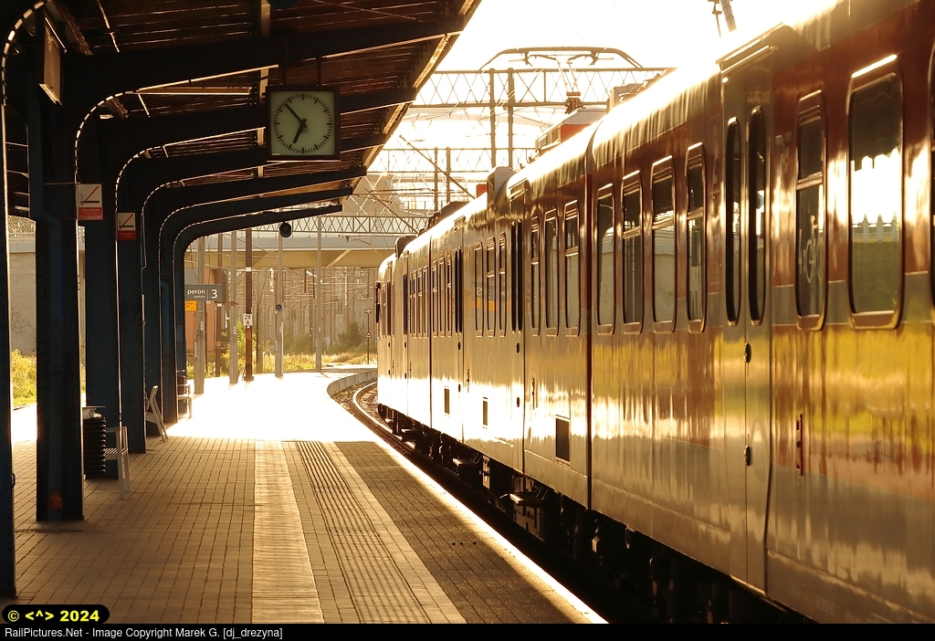 Beautiful light during the sunset over Elblag Station. The train is waiting for an hour of departure to Olsztyn Glowny.