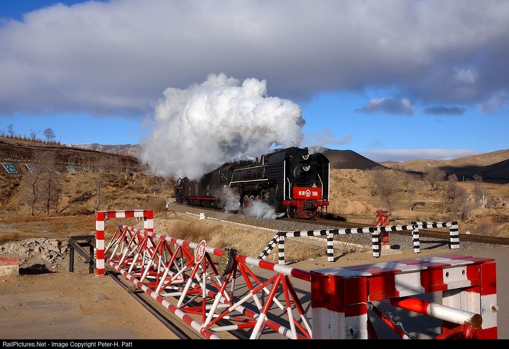 The road barriers of the old and now defunct road between Reshui and Shangdian provide a colourful foreground for the passing QJ7038 and 7119 on their way to the summit of Jingpeng pass. See more of my pictures at https://www.clickasnap.com/profile/Wedding13347