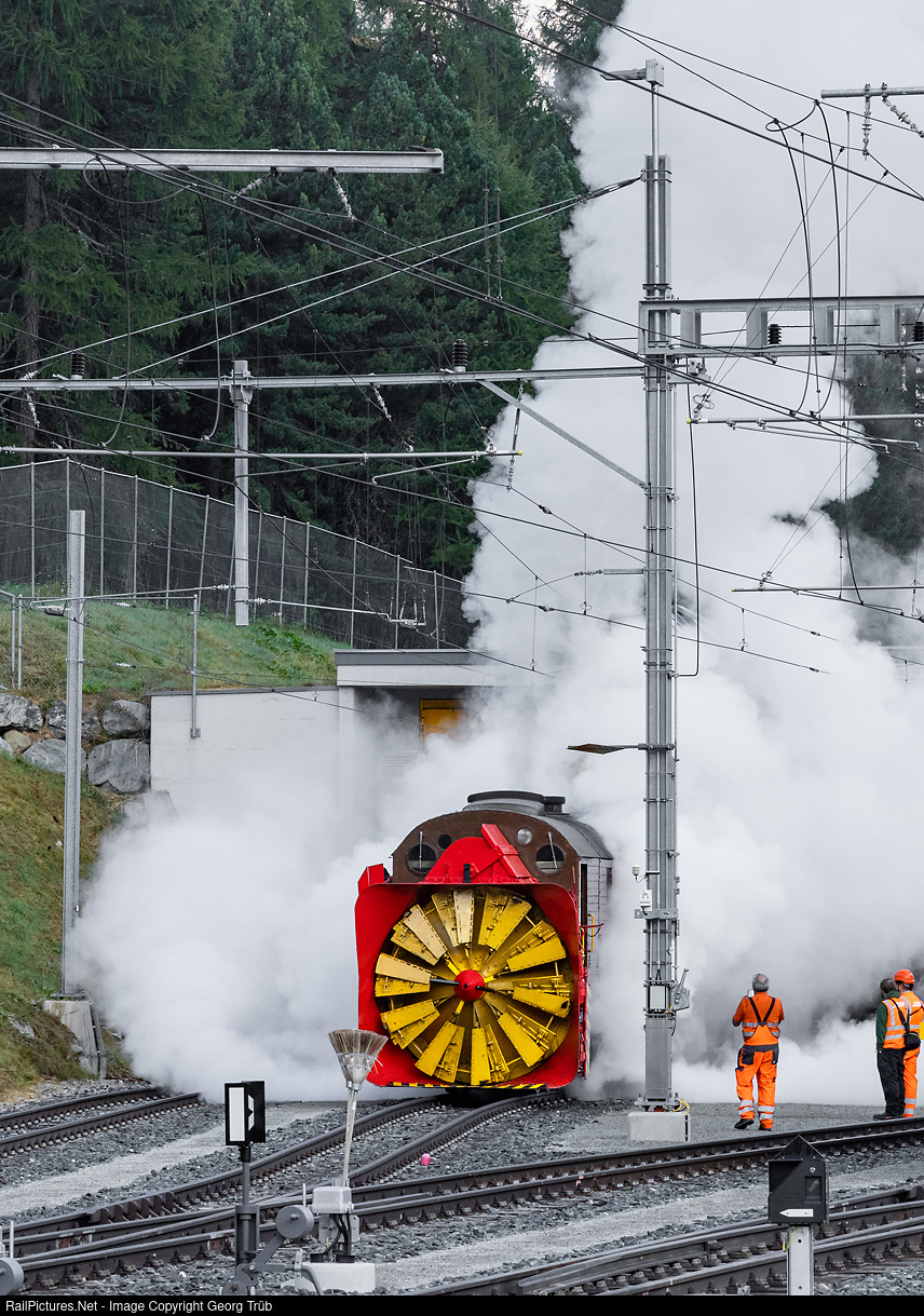 The self-propelled 0-6-0+0-6-0 steam snow blower Xrot d # 9213 of the Rhaetian Railway, built in 1910 by SLM Winterthur for the then independent Bernina Railway, has been preserved as a historic vehicle. Until 2020, demonstration trips with the impressive machine were carried out in winter in the area of the Bernina Pass at around 2250 meters above sea level. Then a comprehensive overhaul was due. A single employee of the Rhaetian Railway refurbished the Xrot d # 9213 at the Pontresina depot and it is now complete. On the day of the ordered brake test and load runs, the vehicle is leaving the shed in Pontresina early in the morning with impressive steam exhaust.