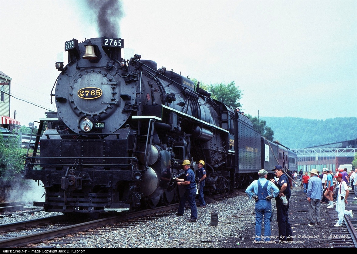 Nickle Plate 765 disguised as C&O 2765, 2-8-4 Berkshire is being readied by the crew for its return trip to Ohio at Hazelwood, Pennsylvania. September 5, 1993. Jack D Kuiphoff © photo