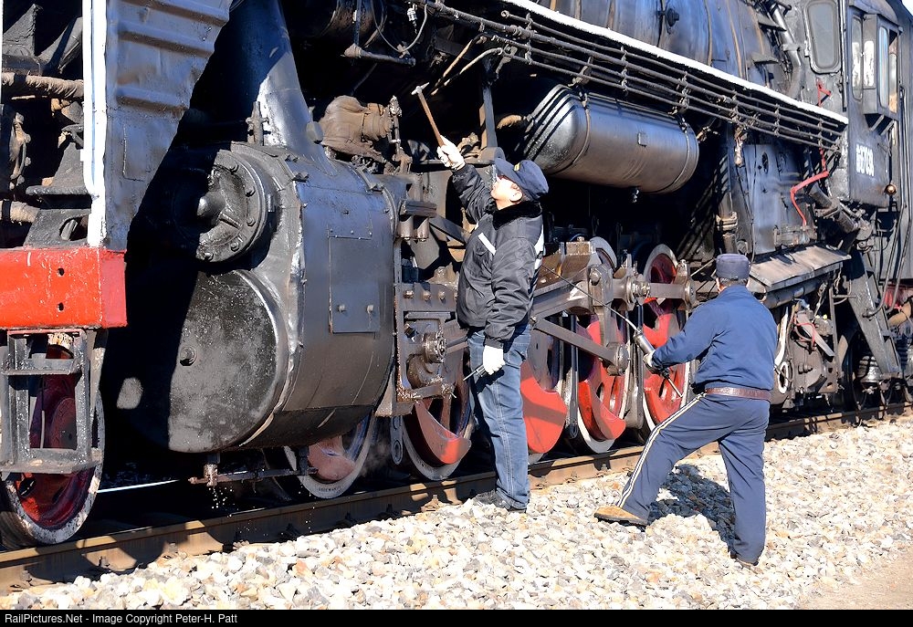 The crew of QJ7038 insprects its engine“s running gear after having arrived at the Jingpeng station. See more of my pictures at https://www.clickasnap.com/profile/Wedding13347