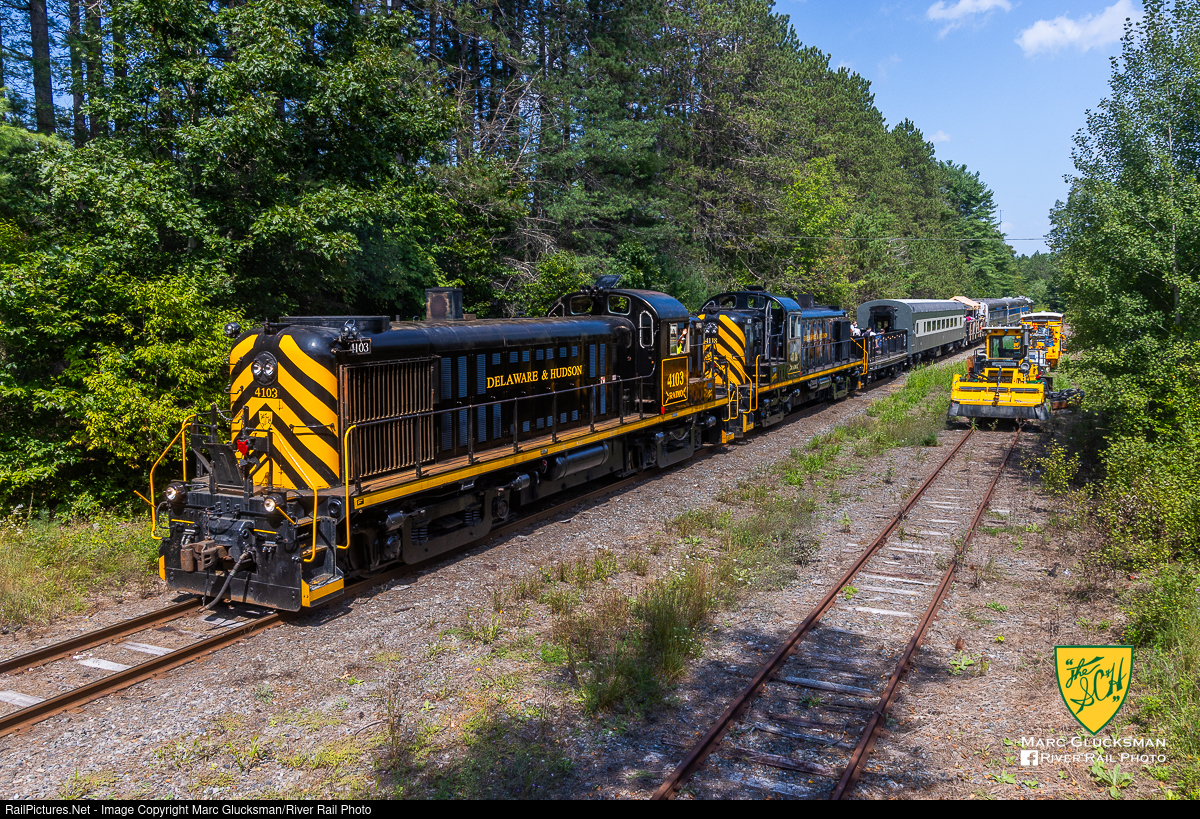 New Alco Pair. On Sunday, August 25, 2024, the Saratoga Corinth & Hudson Railway operated its 'new' pair of Alco RS3s from Corinth to 'Lamothe Landing' in Greenfield Center, New York. The Alcos were delivered from the Genesee Valley Transportation Delaware-Lackawanna Railroad, painted with the "Delaware & Hudson" name, and placed in service within a matter of days! The pair are both former Delaware & Hudson Railroad locomotives, once operating in this area.The SCH now operated four Alcos on its railroad's tourist trains, which features a variety of railroad experiences including dinner trains, pizza trains, and a variety of seasonal experiences. The train is seen south of Mosher Road in Corinth, New York.