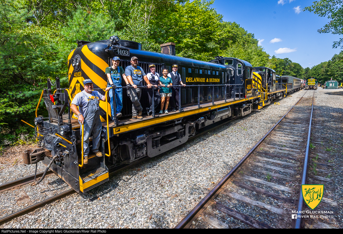 Crew On The New Alco Pair. On Sunday, August 25, 2024, the Saratoga Corinth & Hudson Railway operated its 'new' pair of Alco RS3s from Corinth to 'Lamothe Landing' in Greenfield Center, New York. The Alcos were delivered from the Genesee Valley Transportation Delaware-Lackawanna Railroad, painted with the "Delaware & Hudson" name, and placed in service within a matter of days! The pair are both former Delaware & Hudson Railroad locomotives, once operating in this area.The SCH now operated four Alcos on its railroad's tourist trains, which features a variety of railroad experiences including dinner trains, pizza trains, and a variety of seasonal experiences. After the day's work, the crew took a moment to pose on the locomotive before wrapping up for the afternoon.