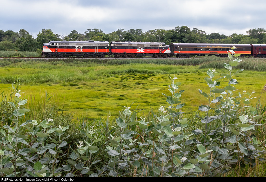 As part of Railfan Day, Mass Coastal operated special trains between Bourne and Hyannis with MC 2011 and 2026 on the south end of the train. The two FL9s, former New Haven units, were never coupled together for passenger service since their arrival on Cape Cod in 2018 until this day. Here, the train is seen in Sandwich headed northbound to Bourne with the FL9s on the rear. 2011 was repainted last year, and 2026 is on the docket to be repainted as well. Mass Coastal recently acquired a third FL9, No. 2027, which is expected to be painted in Mass Coastal colors.