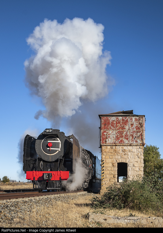 The distinctive water tower at Thaba Nchu, with its sandstone base, which once serviced numerous locomotives, now witnesses steam charging by once again, just like in years past!